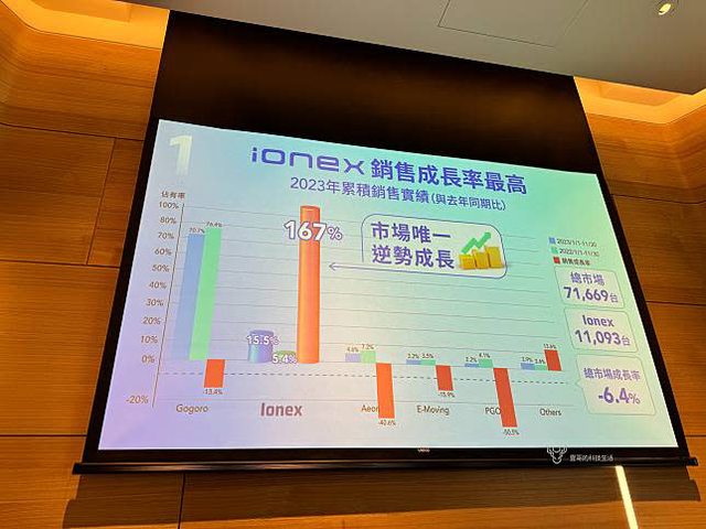 PGO),反觀 Ionex 則是逆勢成長 167%,是目前成長速度最快的二輪電車品牌,目前為