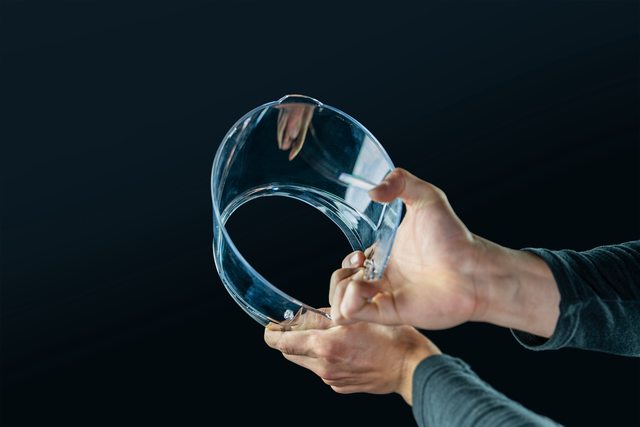 帽底側邊內縮的圓弧角度設計,減少帽緣在撞擊時直接撞斷肋骨,延伸至正後方上揚則是