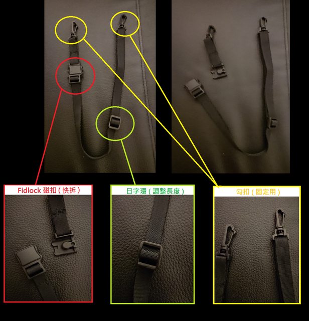 背帶則是兩端都是這種,由兩個相反方相扣環固定設計。 https://i.imgur.com/DWuBU55.jpeg