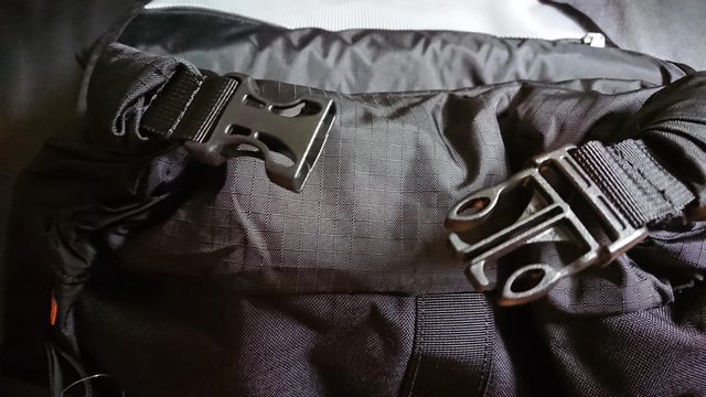 而腰帶本體當然是可拆的,拆下後長這樣。 除了固定用的插扣外,左右的織帶上還都附有收納織帶用的夾具。 而另外一個細節是織帶的末端,Kriega 基本上都是斜切收邊。 這樣的設計看似沒什麼,但要把織帶穿進日字環的時候,順手很多,小巧思大加分! https://i.imgur.com/hwyYprr.jpeg