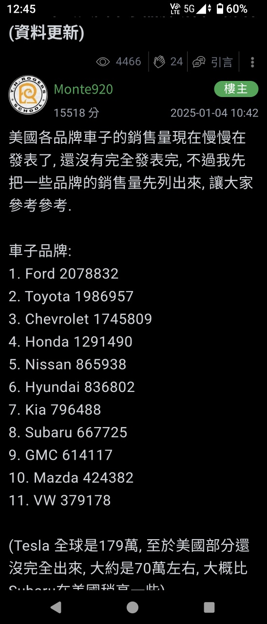 推 jesuskobe: 但美國人自己也愛買日本車阿,2024銷量前5有三個是日本 04/08 14:47