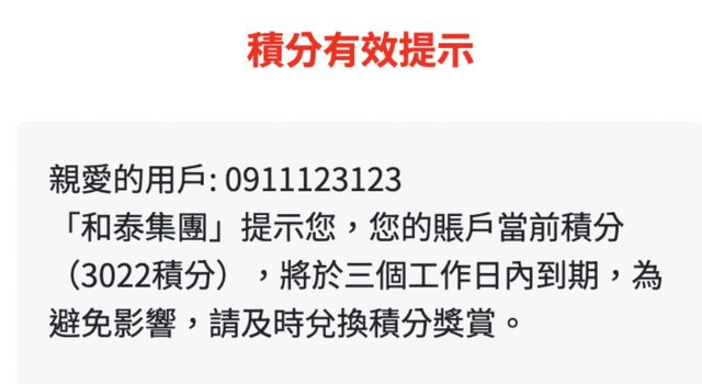 最新詐騙,和泰點數過期,借屍還魂
