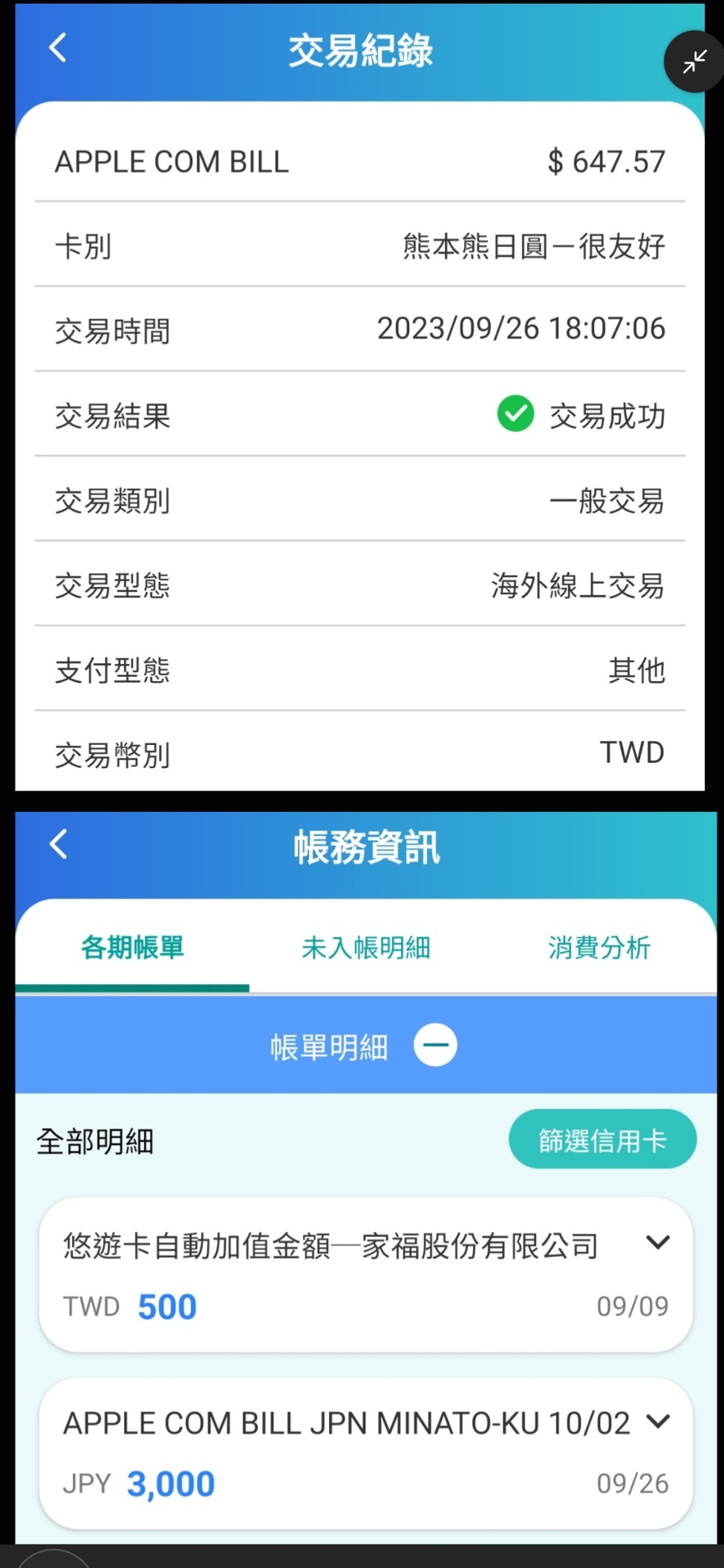 → kalmia : 到出帳後才會顯示為原外幣金額 然後才會用外幣扣 10/18 04:28