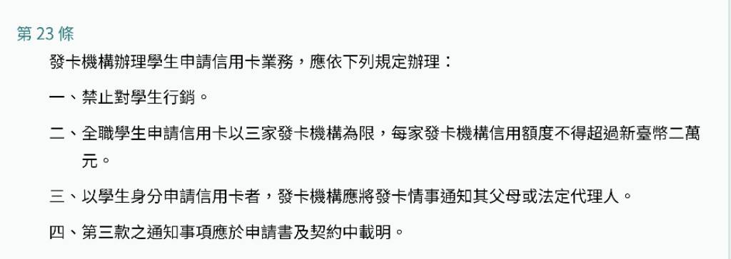 → aoc902001 : 有2家銀行違規了,全職學生辦信用卡最多3家發卡行, 10/19 10:02