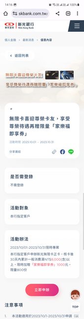 標題Re: [情報] (分眾)新辦新光無限卡,刷8千贈1千
