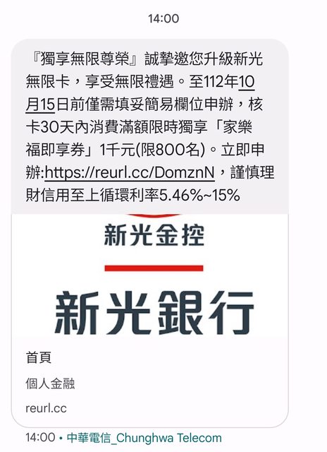 : 本行指定客戶,邀請申辦新光無限