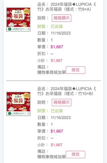 → bianca209: 月的福袋是秋冬茶,12月的是春夏茶,差114.36.190.252 01/18 17:33