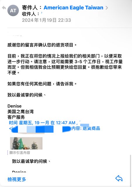 想問問有人實際處理過美國鷹台灣官網的退貨過嗎?