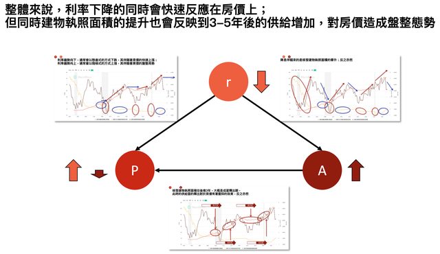 利率向下會導致房價上升;但利率向上並不會導致房價下跌(利率要上升到對於月還款現金