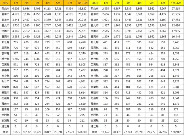 2023年06月買賣移轉棟數出爐