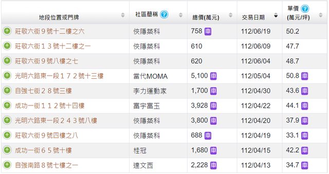 本物件附近地址實價登錄 :