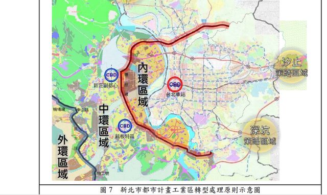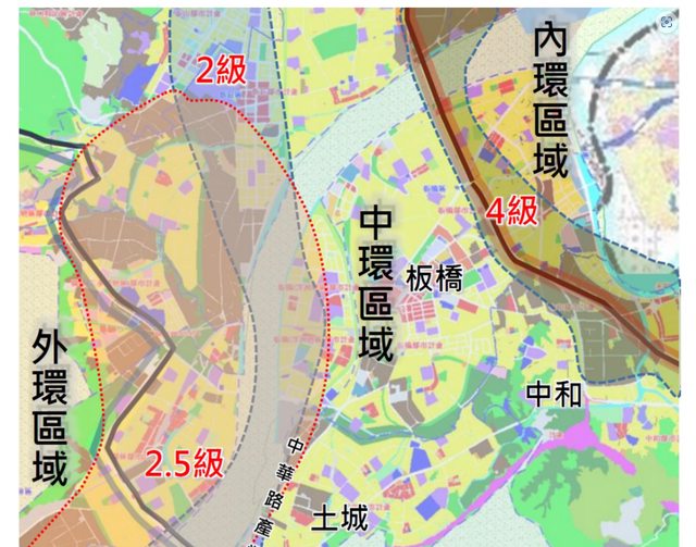 新北市政府將西南方精華區分為內環、中環、外環。