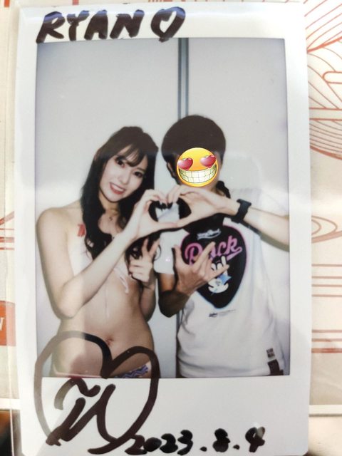 拍完拍立得後我趕緊對楓ふうあ說很高興見到妳,工作人員此時說要簽名在拍立得上