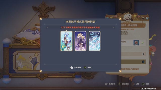 然後5戰技新角像草神鍾離無相雷可能因為剛更新就沒ban