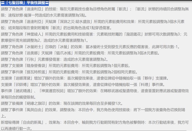 調整了支援牌「隨身營養袋」所需的元素骰費用:所需元素骰調整為1個元素骰。