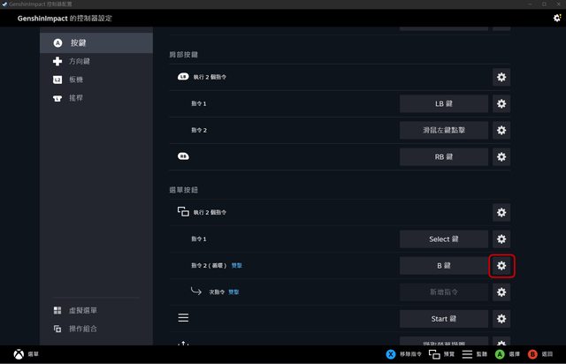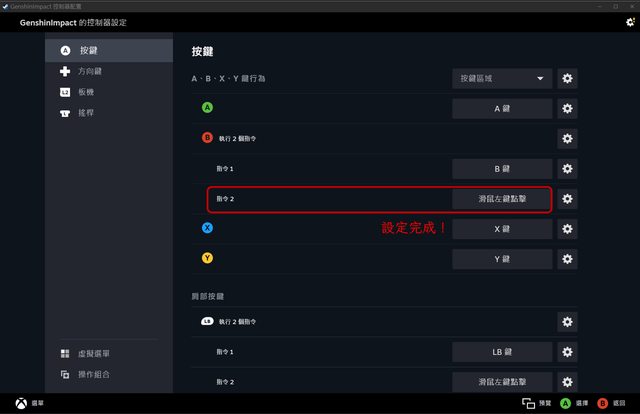 切換到「遊戲手把」標籤→選擇B鍵