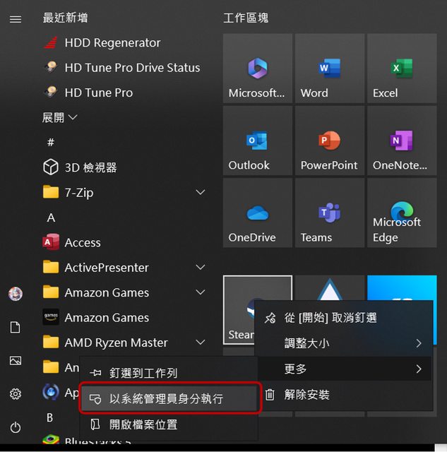 設定完畢之後利用系統管理員身分啟動steam,