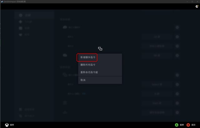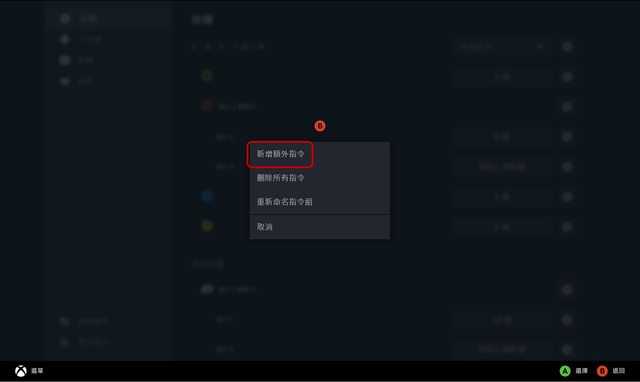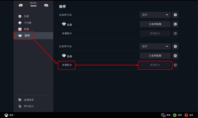 選擇搖桿→外環指令標籤→選擇新增指令