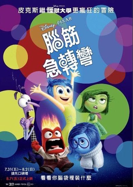 故事主要是11歲小女孩在生活發生改變後,心情大變的故事 裡面出現了五種情緒主宰的生活態度 樂樂、憂憂、怒怒、厭厭、驚驚~任何情緒缺一不可 我自己最喜歡的是憂憂,記得那年萬聖節當時超多人在cos憂憂 跟朋友一起的迪士尼趴踢我整個人臉還塗成藍色出席,獲得了全場的注目(?) 整部片印象很深刻的是擁抱快樂擁抱憂傷,讓自己更有能力面對生活的壓力 其實看這部感觸超級多~~ 裡頭故事完全打中當時心情,也比較懂得怎麼跟自己的情緒相處 而且腦筋急轉彎2就要上了~看完預告後真的超級期待! 新增的四種情緒也更符合長大後的我們 平日的我就像阿焦,每天有著不同的焦慮 假日的我就像阿廢,完全就是我假日黏在沙發上的樣子XDD https://i.imgur.com/w6C1Tc1.jpeg