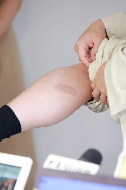 他的腳被排氣管燙到,小腿至今還留著疤。媒體訝異他原來隱忍傷勢,他當場捲起褲管給現