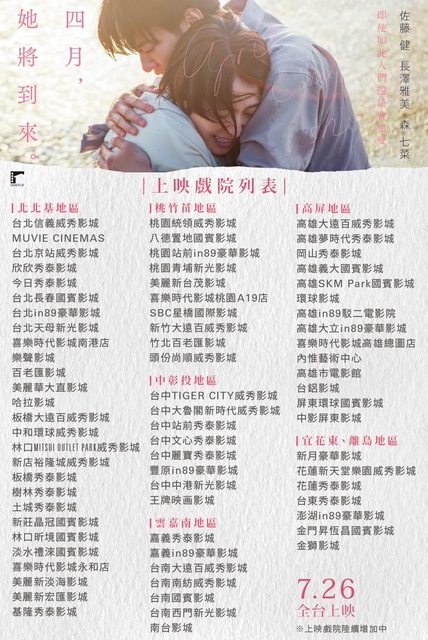 標題[情報] 佐藤健長澤雅美 四月,她將到來 上映戲院
