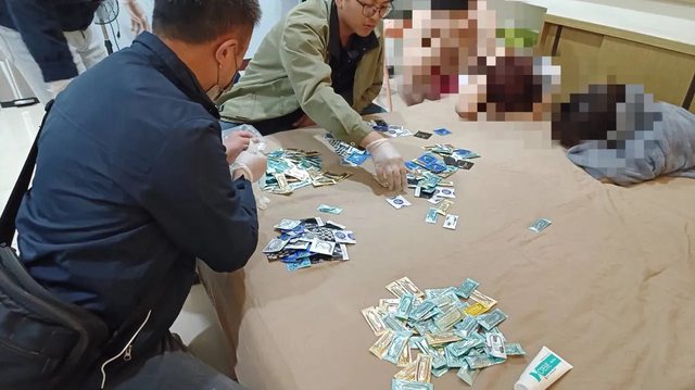 內赤裸激戰的7南4女,起出294個保險套,已拆封使用22個,潤滑液等情趣用品,而警方