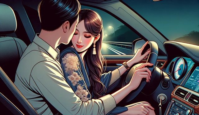 徐妻跟同事李男在車上調情愛撫,被行車記錄器錄下鹹濕對話。AI生成示意圖