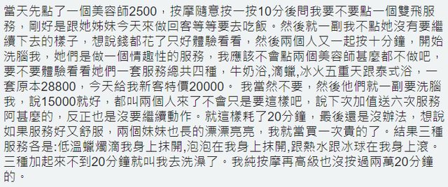 : 泡浴或雙飛),騙說優惠15000,最後結束連奶都沒摸到(女生還戴口罩)