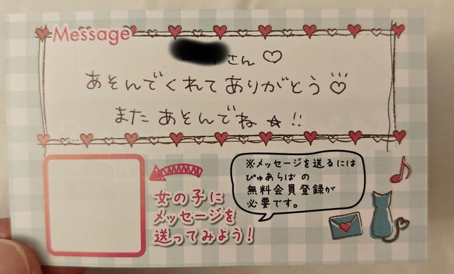 收下M醬的名片後讓她帶領出去並再給了臉頰一個吻後結束這次的遊玩