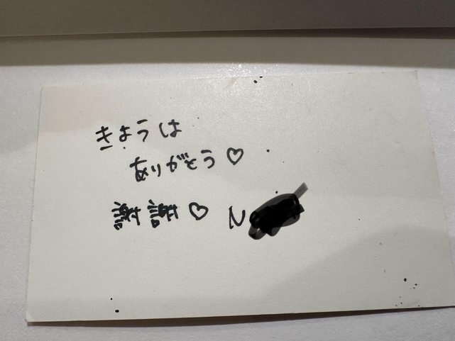 離開前N醬給了我名片,並在背後寫上簡單的感謝話語