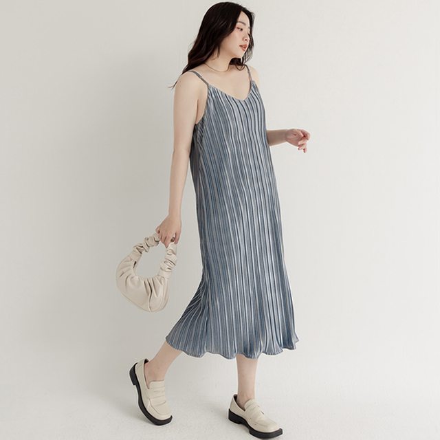 她幾乎都穿這種及地洋裝上班: