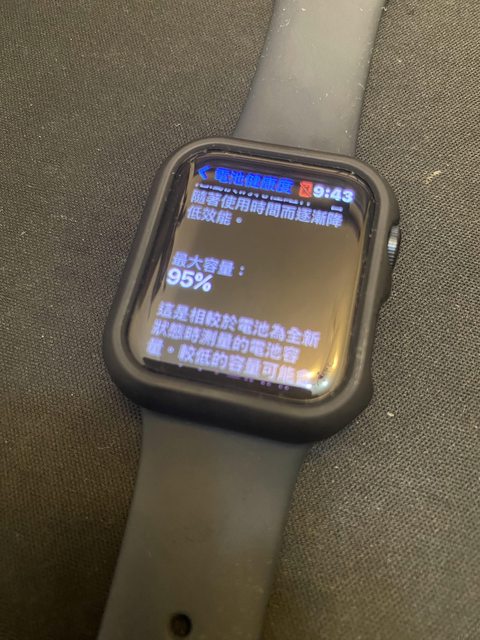 電池健康度目前為95%,所有配件皆在,另外附上一個錶殼和一組全新皮錶帶