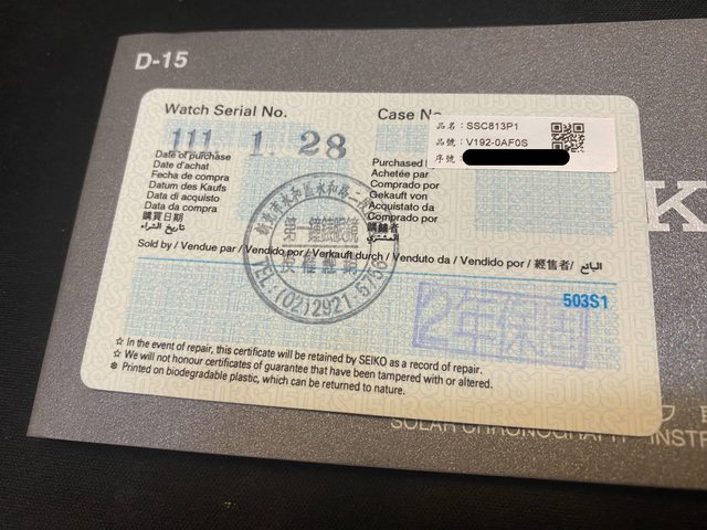 手錶型號:SSC813P1