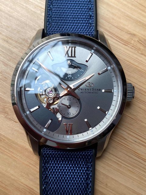 商品:東方之星限量灰藍開芯機械錶
