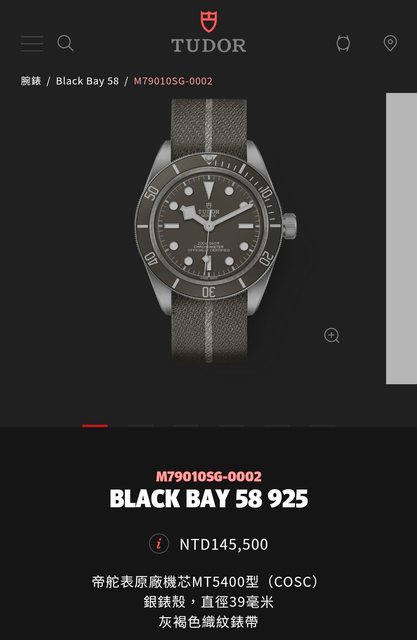 腕錶型號:BLACK BAY FIFTY-EIGHT 925 nato
