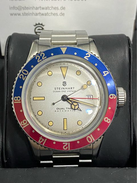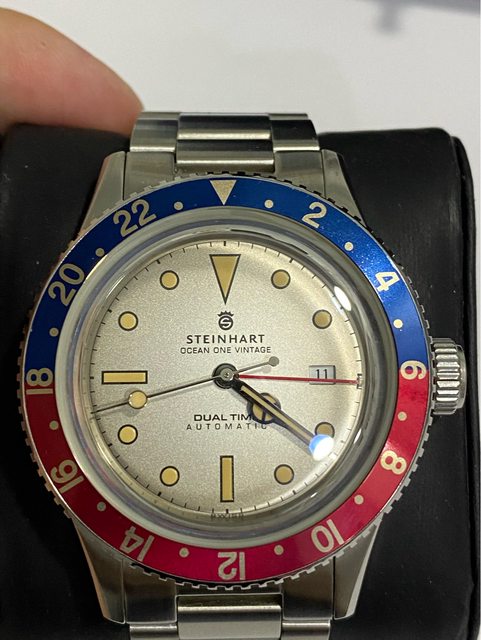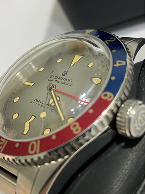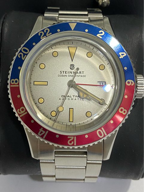 【商品名稱】steinhart vintage Dual time 【型號)103-0495 【商品價格】10800元 【新舊程度】9成左右,走時正常 (日常少戴) 錶徑42mm 箱型藍寶石鏡面 瑞士soprod a10機芯 兩地時間(GMT) 【附件】 約2016年國外購入, 原廠盒多餘錶節皆有 純出售,無交流,不議價 【交易方式】 匯款後黑貓(+150元) 或三重捷運站面交