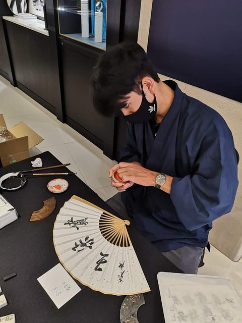 書道家舩田聖也幫大家在扇子上寫字落款。於是我童心未泯的求了這把扇子,雖然有點白爛但很開心。