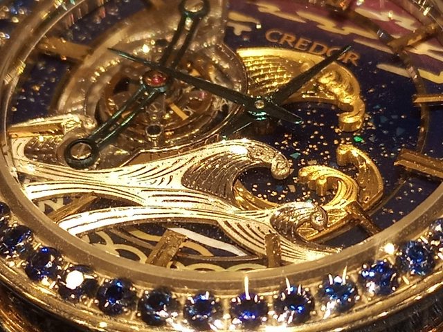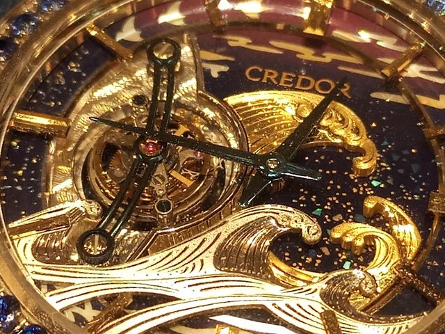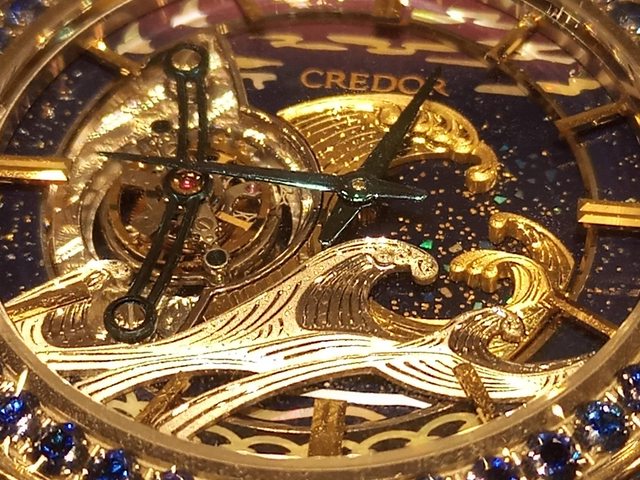 最驚人的其實是6點鐘方向的日本傳統紋飾象徵海浪的青海波,完全是由螺鈿整片鏤空,不是拼接的出來的圖形。這個難度可想而知。