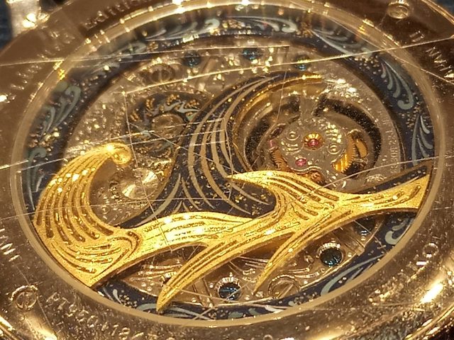 錶殼側面的紋路其實也是螺鈿鑲嵌。