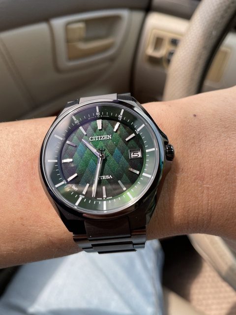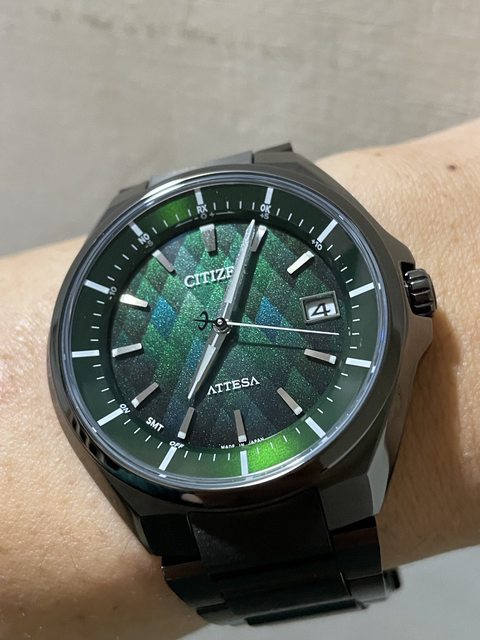 低光源處 面盤顯的深綠色 帶有一點菱格紋路 有一種蛇皮的感覺