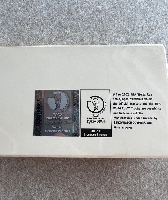 2. Seiko 石英2002年日韓合辦世界盃足球賽紀念錶,面盤直紋設計,中間以灰色調印有