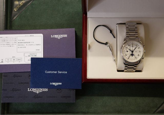 品牌名稱:Longines Master L2.673.4.78.6 保卡年份:2017/6 購買店家:日本店家 販售金額:50000(不議價) 所在地區:桃園青埔 配件狀況:原廠盒單、原廠鋼錶帶 聯絡方式:站內 目前錶況:如圖自評 其他說明:整體錶況也是有使用痕跡,不過品項還是很不錯,沒有什麼撞凹傷 --
