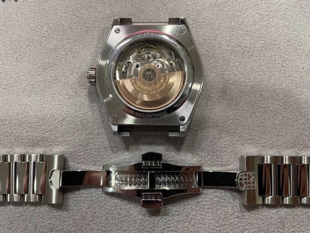 : 商品特色:一體式鏈帶,快拆錶帶(購入時有附一條藍色膠帶),天文台認證自動上鍊機