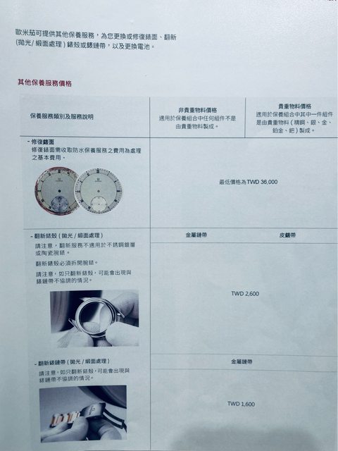 基本上未蓋日期店章,沒有保固,『可免費調錶帶』,『洗油保養可提供二年保固』。