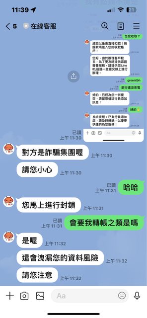 加完line我說我賣場正在做簽署,她就直接爆料那是詐騙,她被騙過。