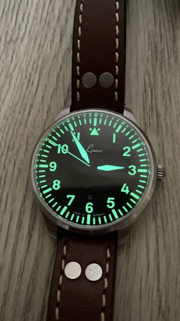 簡潔type A飛行錶面、藍寶石玻璃鏡面、精準石英機芯、超亮夜光、輕薄服貼。台灣找不到全新的貨,所以從國外網站全新購入,試戴後還是比較喜歡文一點的錶,因此出售。