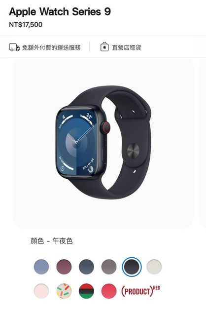 手錶型號:Apple Watch S9 午夜色鋁金屬 錶面41mm GPS+行動網路