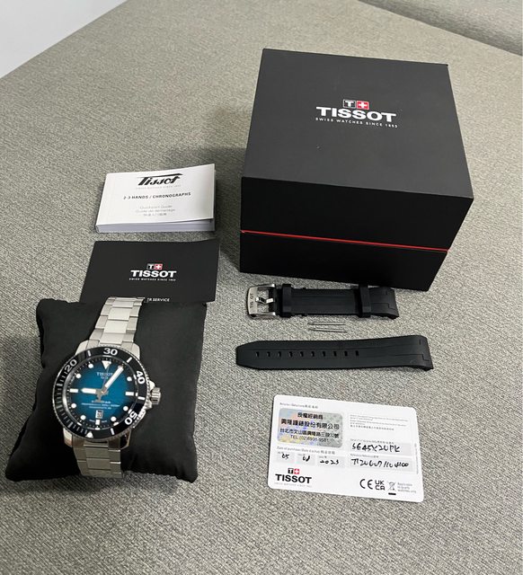 隨附物件:含手錶本體、剩餘錶節、原廠橡膠帶、錶盒、拆下來的錶帶
