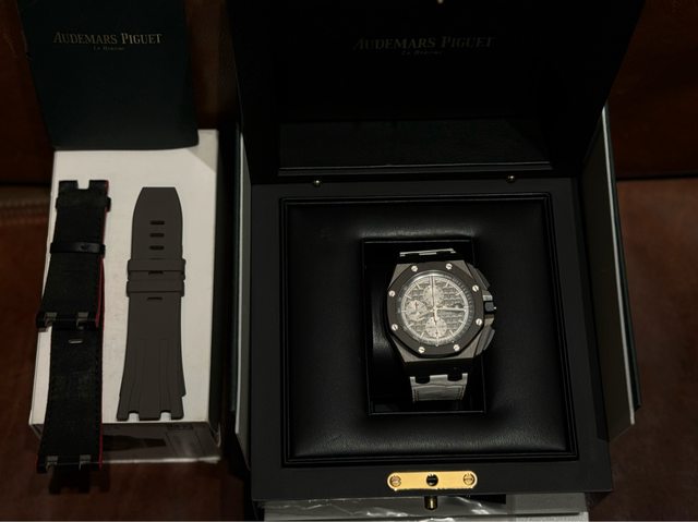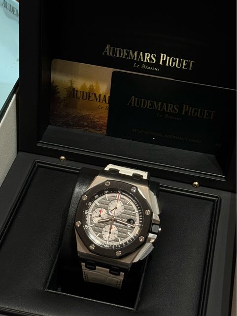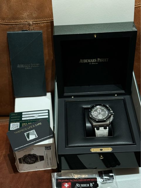 隨物附件:原廠盒/保養單據/保卡/說明書/AP出廠錶帶全新(鈦貓)/另外購買的AP原廠錶帶