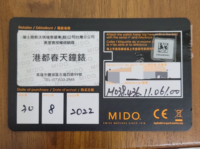 品牌名稱:Mido 美度